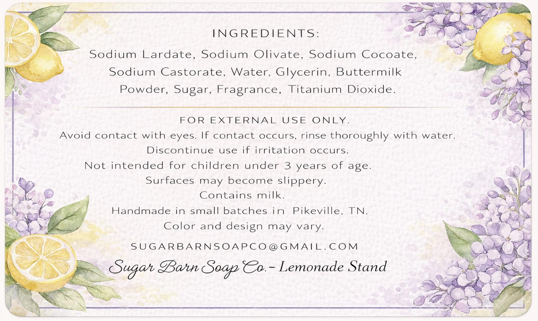 Fresh, creamy, and softly floral — Lemonade Stand is a handcrafted soap inspired by warm spring days and sweet lemonade memories.